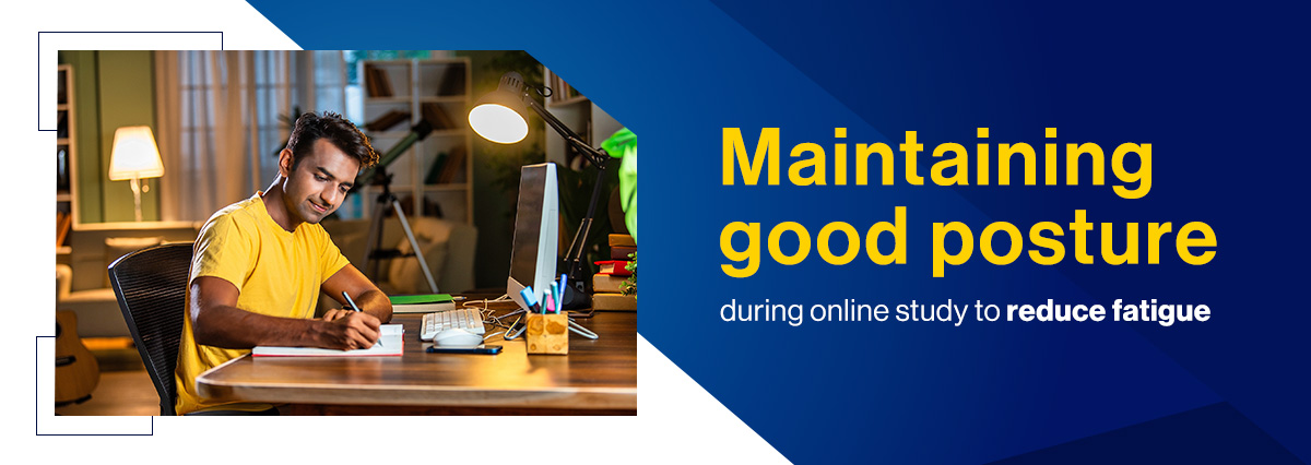 - Keyboard placement: Position the keyboard directly in front of you when attending classes on online course platforms. Ensure your wrists remain straight and flat when typing.